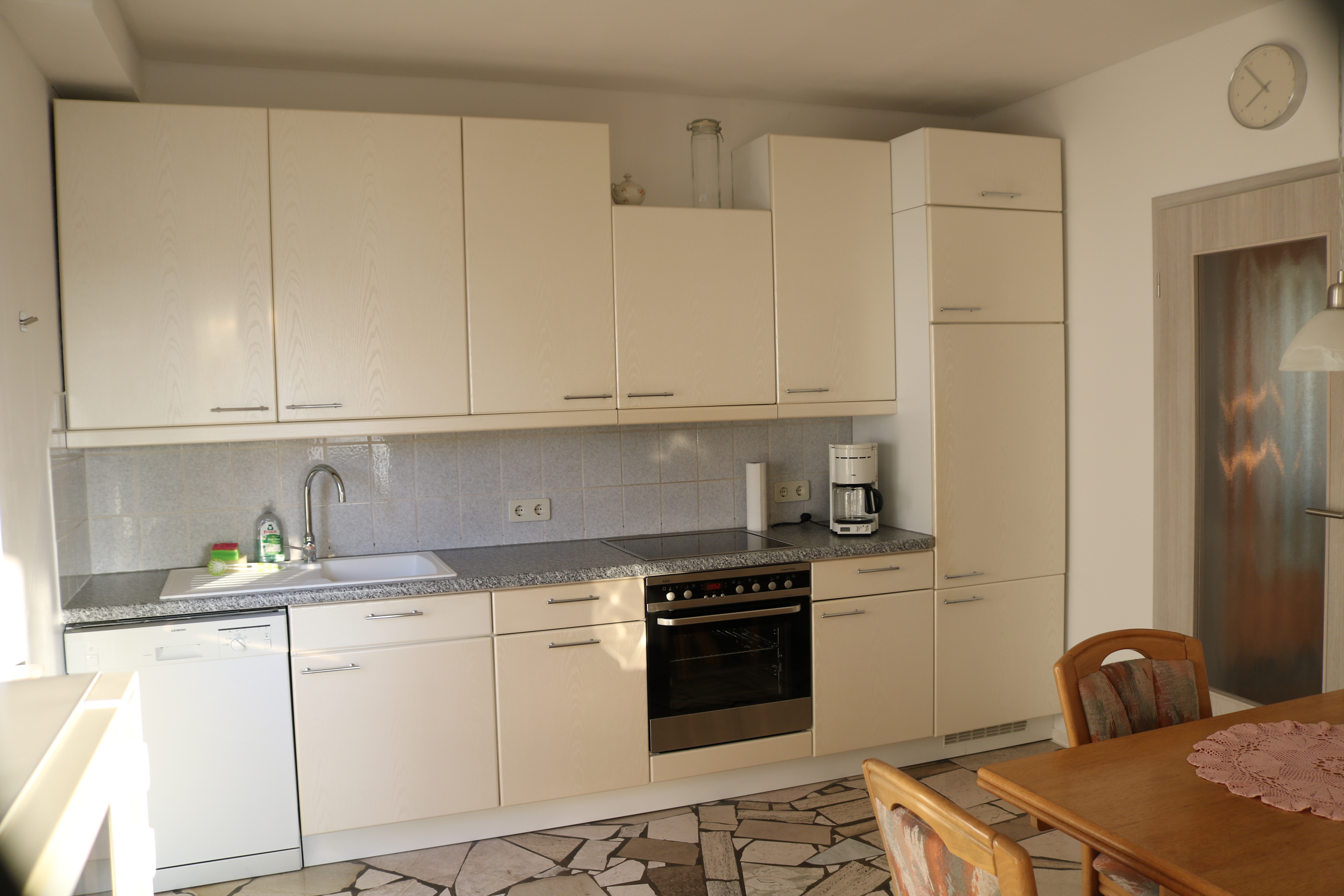 Die Küche ist komplett ausgestattet mit Herd, Backofen, Kühlschrank, Spülmaschine, Kaffeemaschine,